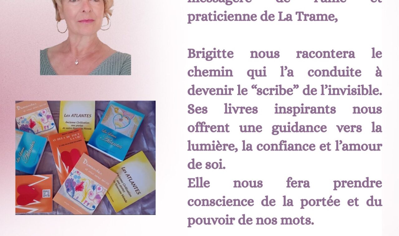 Venez découvri Brigitte Couderc Jouzeau à Montauban ! Auteure de plusieurs livres sur la spiritualité, elle nous parlera de l’importance des mots. Une après-midi d’échanges et de découvertes ! Nombres de places limitées.